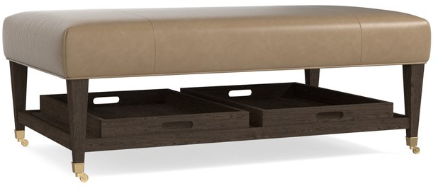 Like your own personal butler, Kara cocktail ottomans easily glide wherever you need an extra seat, a footrest, serving tray, or place to set your drink. With incorporated trays on a lower shelf and gentle gliding casters, these versatile ottomans can do it all. Available in multiple sizes, single or double tray options, leather or fabric, a Kara cocktail ottoman fits any living room.