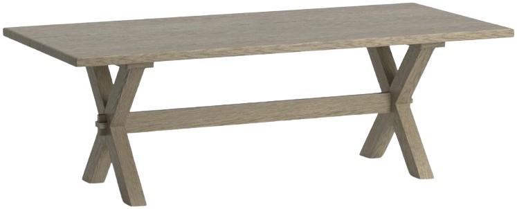 Each bespoke piece is artisan-crafted with heart in sustainable solid Appalachian white oak to draw out the beauty of the materials, available in finishes ranging from greys to rich browns that are lightly distressed. Finish choices are available in-store. The top is a thick 1 3/4" solid oak panel, X-style base gives the piece a rugged simplicity. Also available with a standard edge. Available in four sizes: 72", 90", 109", and 126".