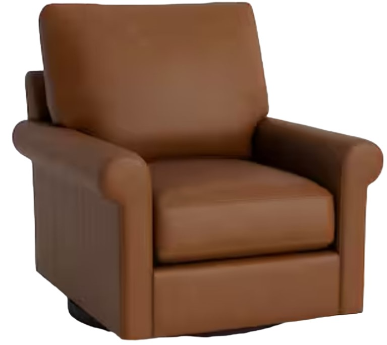 With elegantly curved and tapered arms, Bassett’s Premier custom leather roll arm swivel chair brings the swing to your sophisticated room style. Dress one (or a pair) in a rich Bassett leather to add a level of luxe to your lounging, then settle in for a good, long sit.Read More