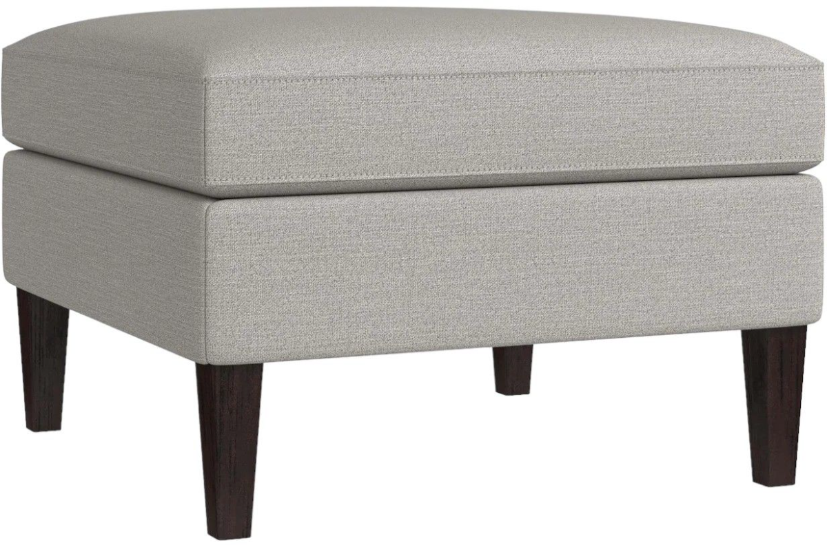 This Danbury Ottoman webbed seating construction means you can comfortably settle your feet or a decorative tray, or even use it as a seat. A smooth, top-stitched top and tall, tapered wood legs in walnut finish give it a clean look. Choose your fabric from a range of possibilities.
