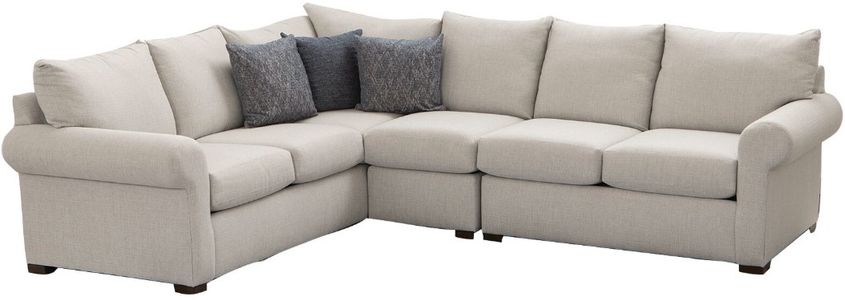 The Hanover L-Shaped Sectional is all about comfort and great transitional design. There's plenty of space for family and friends to relax in the luxury of soft, attached bed pillow back cushions and top-stitched seat cushions. Low-block legs with a Brindle finish complement the fabric options.Read More