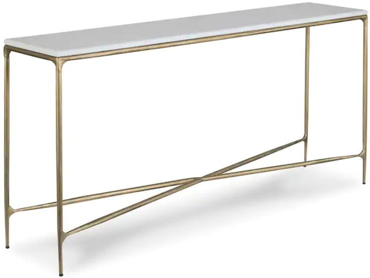A treasured piece in enduring Banswara marble, the Keswick console table brings rustic elegance to an entryway or hallway. Natural streaks of blush, gray, and purple vein the lustrous white marble, adding interest to the smooth-edged beauty of the stone. Slender, gently tapered legs are visually strengthened with cross support.Read More