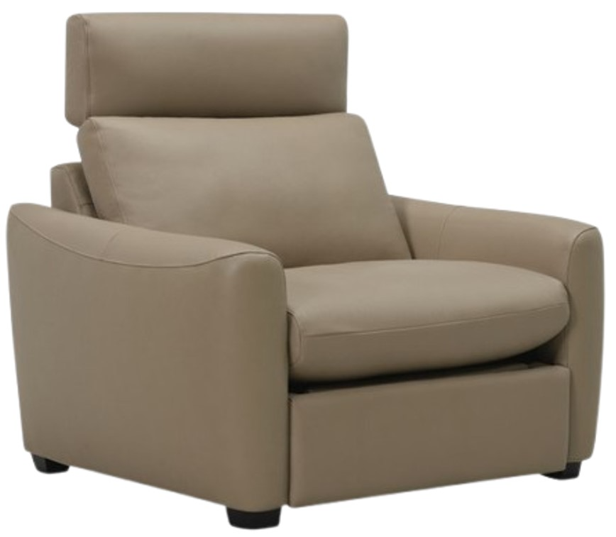 Power recline with a discreet touch control button switch, located between the arm and the seat cushion
