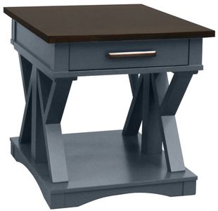 The Americana Modern End Table is where fun meets function. Its classic design character is highlighted in a denim finish and features a contrasting wood-grain top in Sable. The open area below is perfect for storage while its center drawer and crossbeam silhouette create a stunning visual.Read More