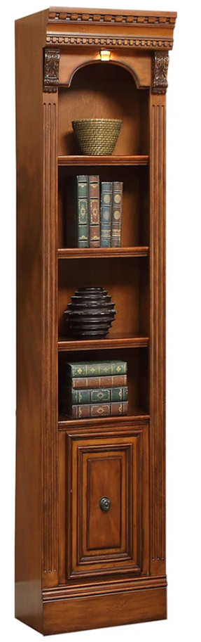 Design a stunning focal point with the Huntington library wall and this 21-inch Open Top Bookcase. Ideal for displaying books, accessories and favorite treasures, it features open display shelves and a closed storage compartment. A rich Antique Vintage Pecan finish highlights its fluted columns and carved detailing.Read More